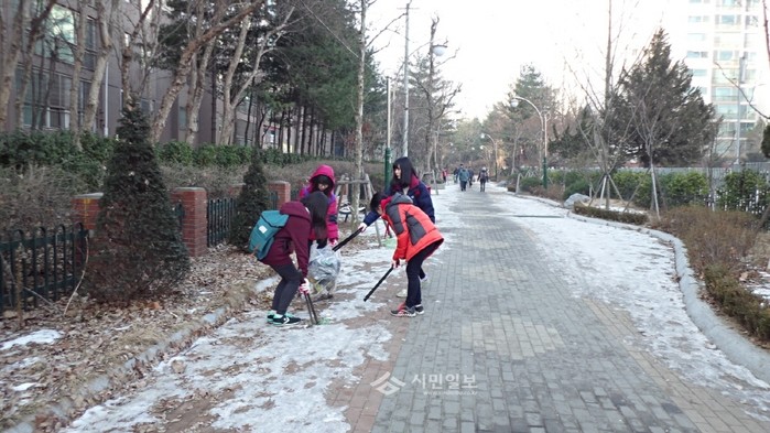 [시민일보]지난 11일 경기 고양시 덕양구 행신2동 주민자치위원회가 겨울방학을 맞아 지역내 학생 100여명과 함께 주택가 및 산책로의 오물 및 불법광고물을 수거하는 봉사활동을 진행했다. 사진은 이날 쓰레기를 줍고 있는 자원봉사자들의 모습.