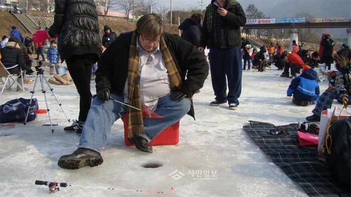 [시민일보]경기 가평군이 오는 26일까지 가평천일대의 자라섬에서 '제5회 씽씽겨울축제'를 열고 송어얼음낚시, 썰매, 얼음조각 등의 다양한 체험행사를 진행하고 있다. 사진은 송어얼음낚시를 체험 중인 외국인 관광객의 모습.
