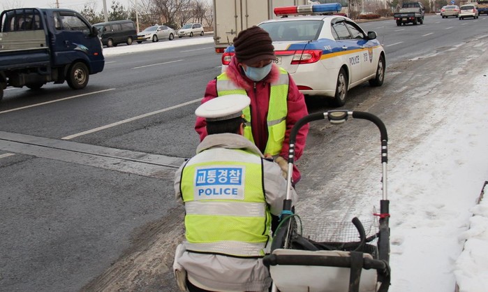 이날 야광조끼 배부는 교통약자에 대한 찾아가는 교통안전 홍보의 일환으로 실시됐으며 야광조끼를 착용함으로써 시인성 확보가 어려운 겨울철에 파지를 수집하는 노인들의 안전한 보행과 교통사고예방에 크게 기여할 것으로 전망된다.