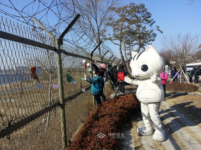 [시민일보]경기 고양시는 지난 18일 '겨울 숲 체험' 행사를 개최해 시민들이 고양 힐링누리의 겨울 숲을 걸으며 일상에 지친 몸과 마음을 치유하고 재충전했다. 사진은 고양시정연수원에서 새해소원을 적어 철책에 거는 소원걸이 행사를 진행하고 있는 참가자들과 고양시의 마스코트.