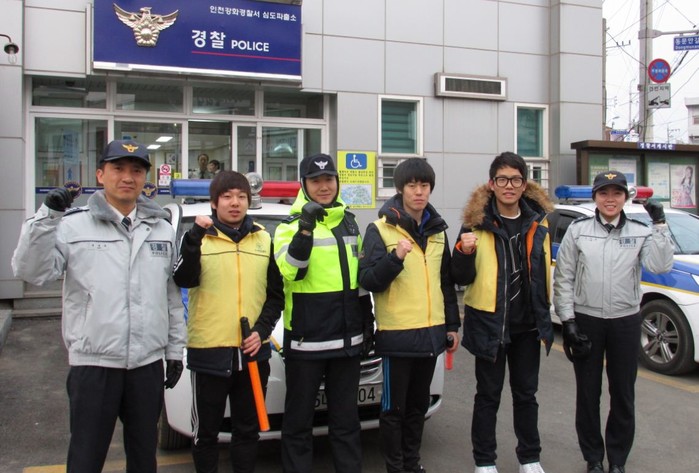 | ▲ 범죄우려지역 합동순찰 참가자들이 포즈를 취하고 있다. | ||
