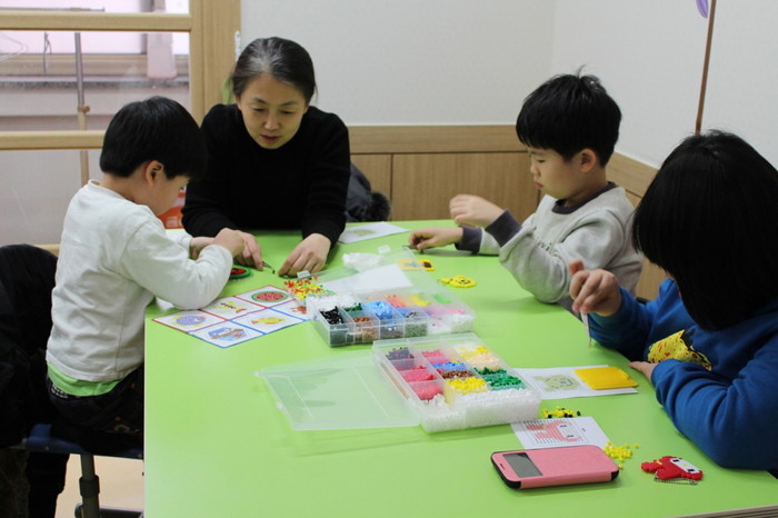 [시민일보]지난 20일 인천서부교육지원청 특수교육지원센터가 특수교육대상학생의 조작능력, 소근육 발달, 집중력 향상을 위해 열쇠고리, 머리핀 등을 만드는 아트비즈프로그램을 진행했다. 사진은 가족과 함께 아트비즈를 만들어 보는 아이들의 모습.