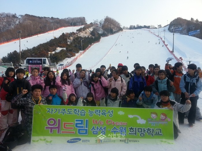 [시민일보]경기 수원시 드림스타트센터는 지난 22~23일 강원도 홍천에서 드림스타트 희망학교에 참여 중인 아동 60명을 대상으로 겨울방학 스키캠프를 열었다. 사진은 캠프에 참여한 아동들의 모습.