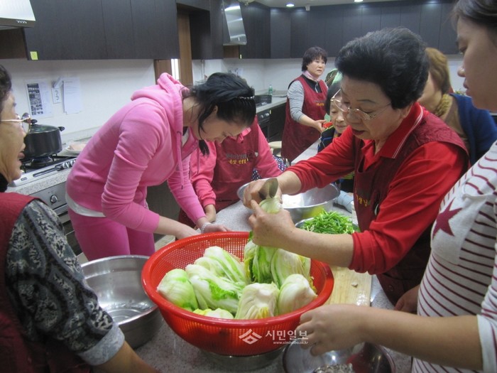 | ▲ [도시락학교] 지난해 11월14일 ‘찾아가는 친정엄마 양성 과정’ 프로그램 중 다문화가정 주부들이 함께 김장을 하고 있다. | ||