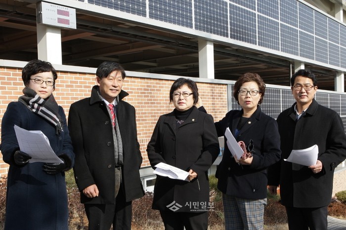 [시민일보]지난 27일 서울 강북구의회 행정보건위원회 소속 의원들이 사업추진현황을 직접 방문해 의견을 듣고 구정에 반영하기 위한 현장활동을 펼쳤다. 사진은 우현 어린이공원 현대화사업의 일환으로 설치된 태양광 발전설비 앞에서 설명을 듣고 있는 행정보건위원회 소속 의원들의 모습.
