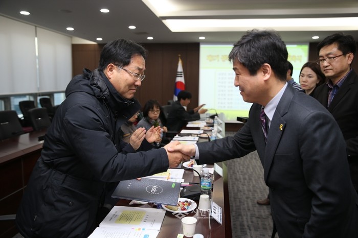[시민일보]최근 서울 성북구가 구청 미래기획실에서 관련 부서장 및 마을만들기에 대한 학식과 경험이 풍부한 민간위원 15인을 마을만들기 정책에 대한 자문역할을 담당할 제2기 마을만들기 운영위원으로 위촉했다. 사진은 위촉식에 참여한 김영배 구청장(오른쪽)과 송경용 신부(왼쪽)의 모습.