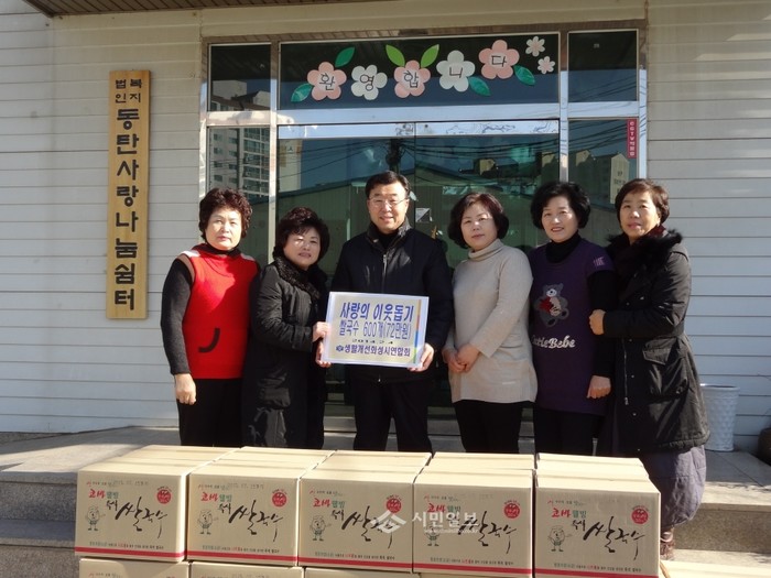 [시민일보]지난 4일 경기 화성시에서는 생활개선화성시연합회가 화성시 농업기술센터 소장의 취임축화화분 판매 수익금으로 마련한 쌀국수 600개를 동탄사랑나눔재단에 기탁, 무료급식 봉사를 실시했다. 사진은 생활개선화성시연합회 회원들이 기념촬영을 하는 모습.