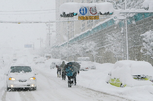 10일 오전 강원 강릉시에 닷새간 쏟아진 폭설로 교통상황이 좋지 않아 출근길에 나선 시민들이 불편을 겪고 있다. 강릉 등 11개 시·군에는 대설경보가 발효 중이다. 이번 눈은 11일까지 25㎝의 눈이 더 내린 뒤 그칠 것으로 예보됐다.
