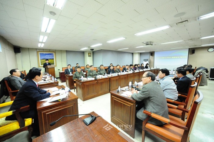 [시민일보]경기 구리시는 11일 구리시청 3층 상황실에서 ‘2014년 제1회 통합방위협의회 및 안보정책 자문위원회 연석회의’를 개최했다. 이날 북한 정세 변화와 지구촌 신냉전시대에 대한 이해와 지방자치 안보태세의 나아갈 방향, 예비군 동원시 지원방향 등에 대한 대책 논의를 펼쳤다.