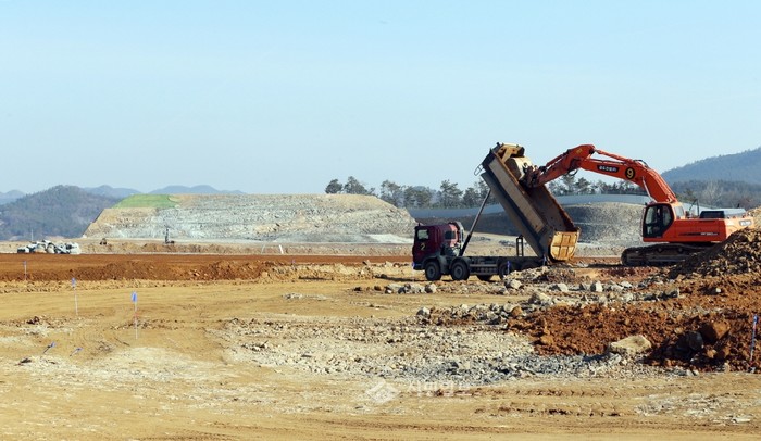 [시민일보]전남 함평군이 야심차게 추진하고 있는 동함평일반산단 조성공사가 한창인 가운데, 11일 굴착기와 덤프트럭이 분주히 흙을 퍼나르고 있다. 이곳은 현재 공정률 54%로 공사가 순조롭게 진행되고 있으며 올 연말이면 완공될 예정이다.