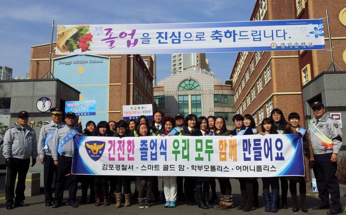 이날 예방활동은 건전한 졸업식 문화 정착 및 학교폭력 분위기를 사전 차단하기 위해 캠페인 및 합동순찰을 실시됐으며 김포시청, 학부모폴리스, 어머니폴리스, 스마트골드맘, 재학생, 교사 등 50여명이 참석한 가운데 진행됐다.