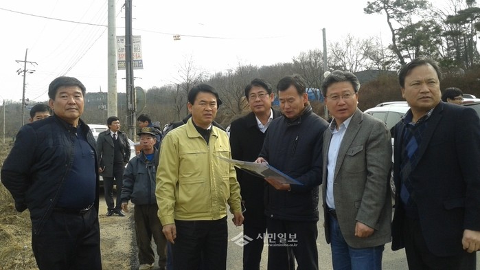 [시민일보]13일 채인석 경기 화성시장은 우기에 하천 범람 및 뚝 유실이 자주 발생해 농경지 피해가 심하고 사고가 자주 발생하는 원천동 새실 구거정비 사업 추진현장을 관계자들과 함께 방문해 문제점을 파악하고 해결방안을 의논했다. 사진은 이날 현장을 방문해 관계자들로부터 설명을 듣는 채인석 시장(오른쪽 두번째)의 모습.