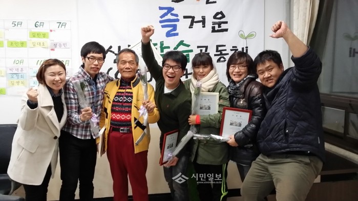 | ▲ 동네 주민으로 구성된 가양5종합사회복지관의 마을활동가들이 지역 노인과 기념촬영을 하고 있는 모습. 이들은 단주모임을 이끌고 학습공동체를 만드는 등 지역일꾼으로 거듭났다는 평가를 받고 있다. | ||