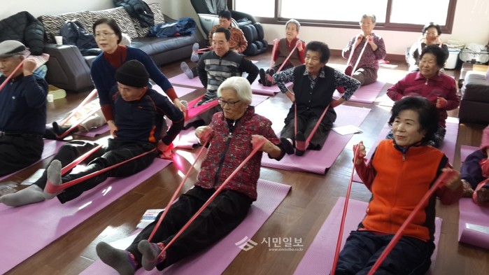 [시민일보]경기 양평군이 농한기를 맞아 지역내 마을회관, 경로당, 보건진료소를 방문해 요가, 스트레칭 등의 건강체조와 식이요법 등의 교육으로 노인들이 스스로 건강을 관리할 수 있도록 돕고있다. 사진은 최근 마을회관에서 강사의 지도를 받아 스트레칭 중인 노인들의 모습.