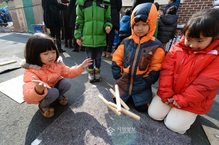 [시민일보]서울 동대문구가 정월대보름을 맞아 지난 12~15일에 각 동 직능단체 주관으로 윷놀이, 제기차기, 팽이치기 등 다양한 민속놀이 행사를 개최하고 음식을 나눠먹으며 주민간의 화합을 다지는 시간을 보냈다. 사진은 지난 12일 열린 행사에서 윷놀이 중인 아이들의 모습.