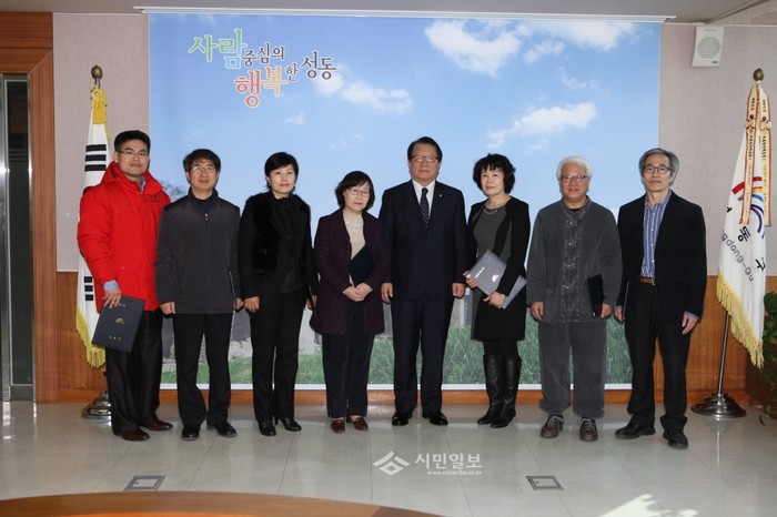 [시민일보]최근 서울 성동구가 사회적경제 조직의 설립과 운영 지원을 위한 사회적경제활성화위원회의 첫 회의를 열어 위촉장을 수여하고 사회적 경제 조직의 발굴, 지원에 관한 사항을 논의했다. 사진은 이날 첫 회의를 마치고 기념촬영을 하는 고재득 구청장(왼쪽 다섯번째)과 위원들의 모습.