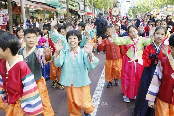 | ▲ 강서구의 축제 중 가장 인지도와 참여율이 높은 '의성 허준축제'에 참여한 어린이들이 한복을 입고 거리행진 중이다. | ||