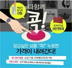 만약 일정 콕 수가 모이면 자신이 원하는 상품을 최대 87% 할인된 가격에 구매할 수 있는 기회가 주어진다.(익일 10시, 선착순) 최근 한 인기 드라마에서 선보여지며 여성들 사이에서 핫 아이템으로 떠오른 '천송이립스틱(라네즈 세럼인텐스 립스틱)'은 공짜로, 프라다 지갑은 9만원대, 페라가모 선글라스 5만원대, 다이슨 청소기 14만원대 등 대폭 할인된 가격으로 준비돼 있다.