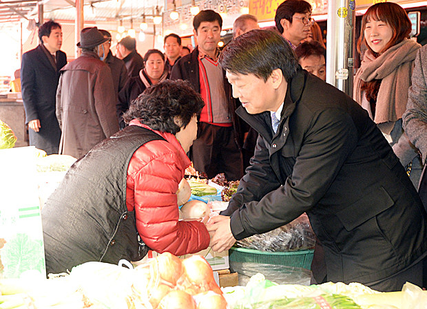 21일 오후 안철수 새정치연합 중앙운영위원이 경기도 수원 팔달문 근처 시장을 찾아 상인들과 인사하고 있다.