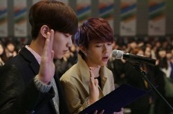 이날 VIXX 혁과 인피니트 남우현은 입학식에서 대표로 선서를 맡았다.