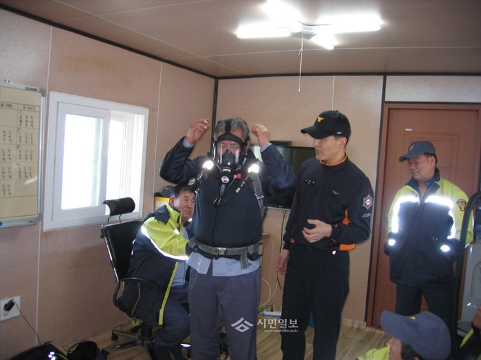 [시민일보]최근 인천강화소방서가 의용소방대의 기능을 강화하고 화재 등 기타 재난 상황이 발생했을 때 대처 능력을 강화하기 위해 서도전담의용소방대를 방문해 장비사용법, 화재예방대책 등을 교육하고 건의사항을 청취했다. 사진은 소방관의 지도로 장비를 착용하는 의용소방대원의 모습.