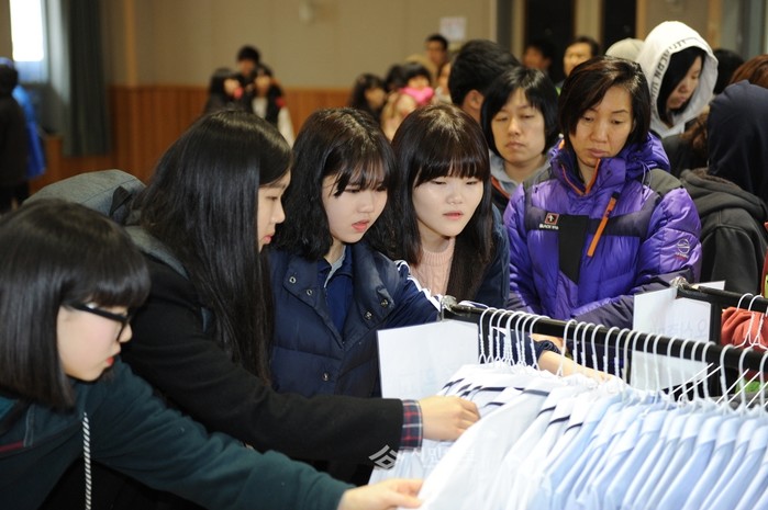 [시민일보]26일 경기 오산시가 청소년들에게 근검절약과 녹색생활 실천의 중요성을 일깨우고 학부모들의 교복구입 부담을 줄이기 위해 '제5회 사랑의 교복 물려주기 바자회'를 열었다. 행사 수익금은 전액 장학금으로 사용된다. 사진은 이날 행사에 참여한 주민들이 교복을 고르는 모습.