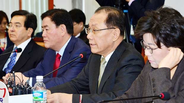 3일 오전 서울 여의도 국회 새누리당 대표실에서 열린 최고위원회의에서 황우여 대표가 민주당과 새정치연합(가칭)의 통합신당 추진과 관련, “안철수 의원의 새정치연합 팀의 일부가 철수해 구태정치라고 비난하던 민주당으로 들어가는 모습”이라고 비판하고 있다.