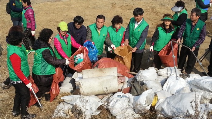 [시민일보]인천 서구새마을회는 지난 3일 새마을지도자 100여명이 참여한 가운데 지역내 공촌천 고수부지에서 새마을 클린 봉사단 발대식 및 국토 대청결운동을 진행했다. 사진은 쓰레기들을 청소하고 있는 새마을 클린봉사단원들의 모습.