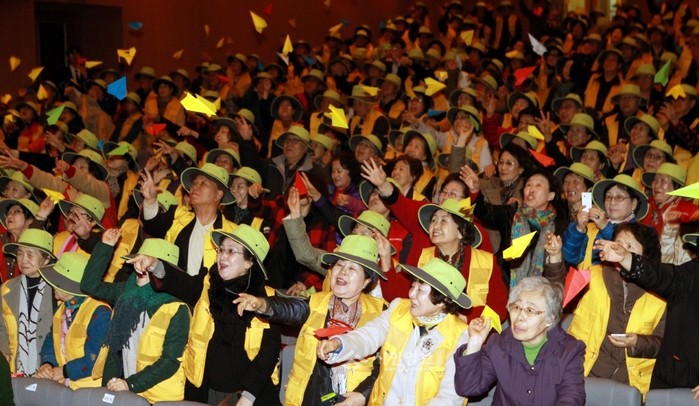 [시민일보]경기 용인시가 지난 5일 노인일자리 사업 발대식을 시청 에이스홀에서 노인일자리사업 참여자 등 500여명이 자리에 참석한 가운데 성황리에 끝마쳤다. 사진은 행사에 참석해 종이비행기를 날리는 행사 참가자들의 모습.