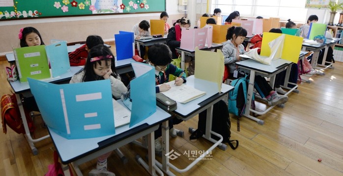 [시민일보]초등학교, 중학교 학생들을 대상으로 교과학습 진단평가가 실시된 6일 오전 서울 중구 신당동 광희초등학교 3학년의 한 교실에서 학생들이 시험문제를 풀고 있다.