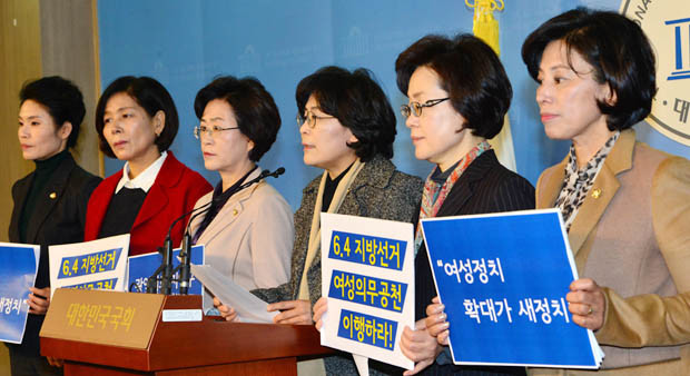 이들은 “여성들은 지역기반이 약하고 조직과 재정에서도 아직 열세다. 그나마 지방선거 여성 의원 비율이 1991년 0.9%에서 2010년 18.8%로 증가하는 것은 2006년 기초의원 정당공천제 및 비례대표 여성할당제, 2010년 국회의원 선거구별 여성의 의무추천 등의 제도적 뒷받침이 있었기 때문”이라고 설명했다.