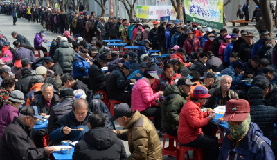 따뜻한 이웃에게 따뜻한 밥 한끼를 내놓는 ‘사랑해 밥차’가 올해에도 어김없이 ‘시동’을 걸었다. 11일 낮 대구 두류공원에서 대구시각장애인연합회 회원과 대구지방검창청서부지청 사랑나눔봉사단, 대구보호관찰소 서부지소 직원들이 ‘사랑해 밥차’로 어려운 이웃에게 점심을 무료로 제공하고 있다.