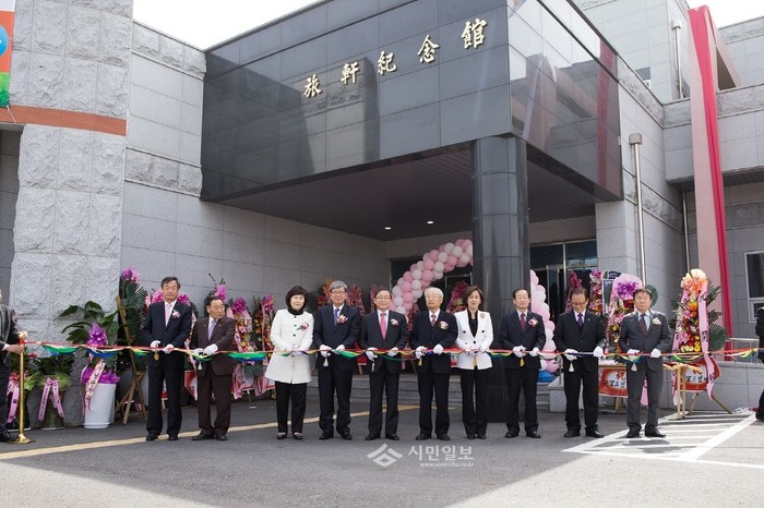 지난 18일 경북 구미시 여헌학연구회는 조선의 성리학자인 여헌 장현광 선생의 생애와 업적을 연구, 교육해 시민들의 자긍심을 높이기 위해 건립한 여헌기념관의 개관식을 했다. 사진은 이날 개관식에 참석한 관계자들이 테이프 커팅식을 하는 모습.