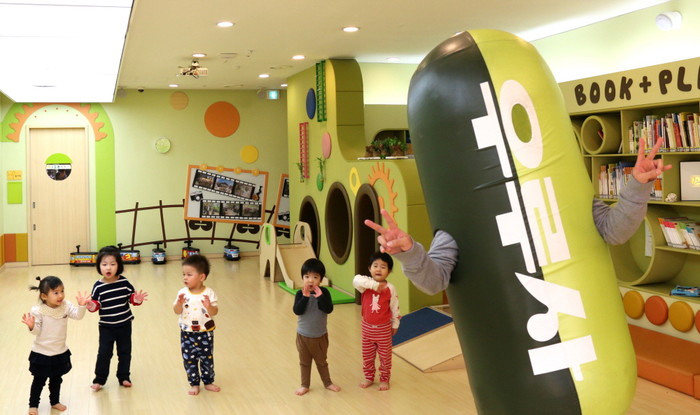 우루사 알약모양을 본 따 만들어진 ‘캡슐맨’은 지난해부터 대웅제약 본사, 연구소, 공장 직원들을 찾아 다채로운 이벤트를 진행하고 있으며 이번 행사는 사내어린이집 ‘리틀베어’에 아이를 맡기고 있는 임직원들의 요청으로 진행하게 됐다.