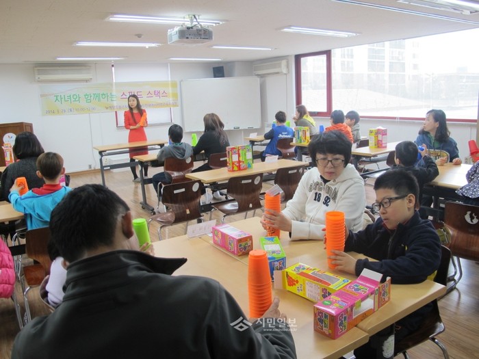 지난달 29일 인천 계양구 드림스타트와 서부교육지원청이 부모와 자녀 간의 원활한 소통을 위한 부모교육 프로그램 '자녀와 함께하는 스피드스택스'를 진행했다. (사진제공=계양구청)