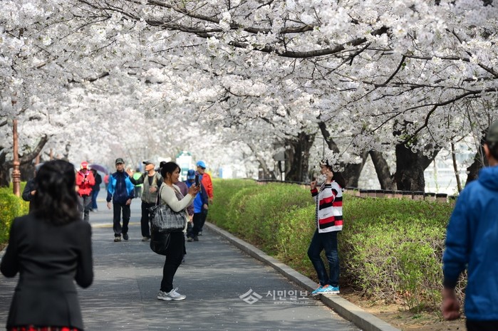 중랑천 제방 장안 벚꽃길서 봄나들이