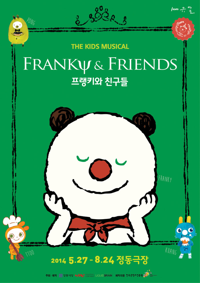 | ▲ 뮤지컬 '프랭키와 친구들'의 포스터 속 주인공 프랭키(중앙)와 퐁(왼쪽 위) 뚜(왼쪽 아래) 쿠앙(오른쪽 아래) | ||