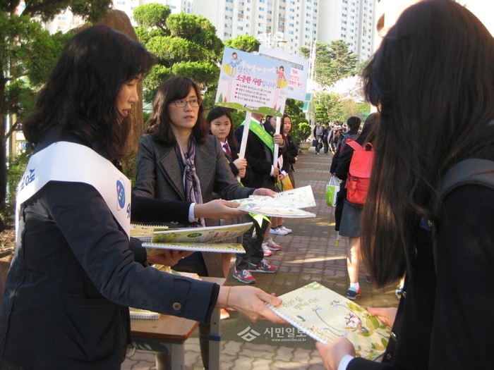 경기 용인시 수지보건소는 지난 4일 '제45회 정신건강의 날'을 맞아 정신건강에 대한 인식과 편견을 해소하고 정신건강에 대한 지역주민의 관심을 유도하기 위해 서원중학교 건강 지킴단들과 함께 생명사랑, 우울증 관련 패널 전시, 피켓, 24시간 사랑의 전화 홍보물을 배부하는 등 정신건강 캠페인을 실시했다. (사진제공=용인시청)