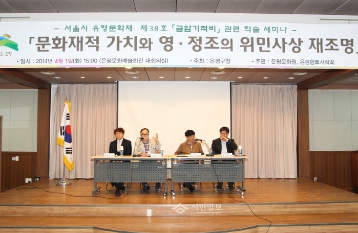 서울 은평구는 지난 1일 은평문화예술회관 대회의실에서 진관동 소재 서울시 유형문화재 제38호인 ‘금암기적비’의 문화재적 가치와 영·정조시대 위민사상의 재조명에 관한 학술 세미나를 개최했다. 이날 세미나에서는 역사·사회·문화 전문가가 ‘금암기적비’의 유·무형 가치를 이론적, 학술적으로 정리해 당시의 위민사상을 현대적 의미로 재해석했다. (사진제공=은평구)