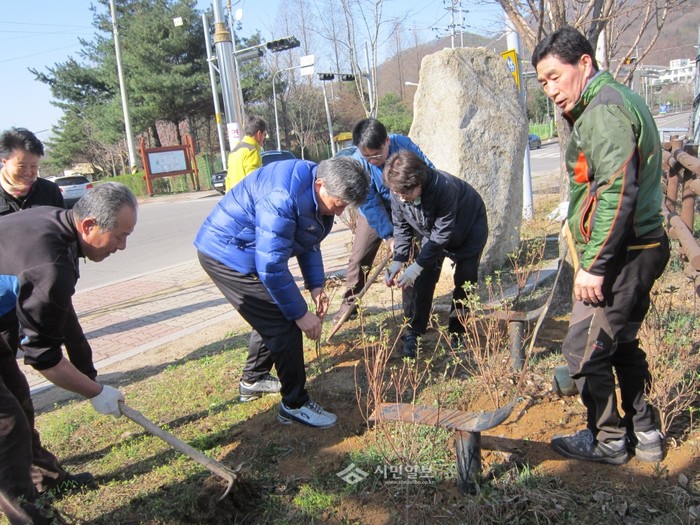 지난 6일 경기 동두천시 소요동 주민자치위원회는 소요13동 장년회와 함께 소요산·마차산의 관광객 유치를 위해 마차산 등산로를 따라 철쭉 1300그루를 심었다. 사진은 이날 꽃밭 조성 활동에 참여한 주민들이 힘을 합쳐 철쭉을 심는 모습. (사진제공=동두천시청)