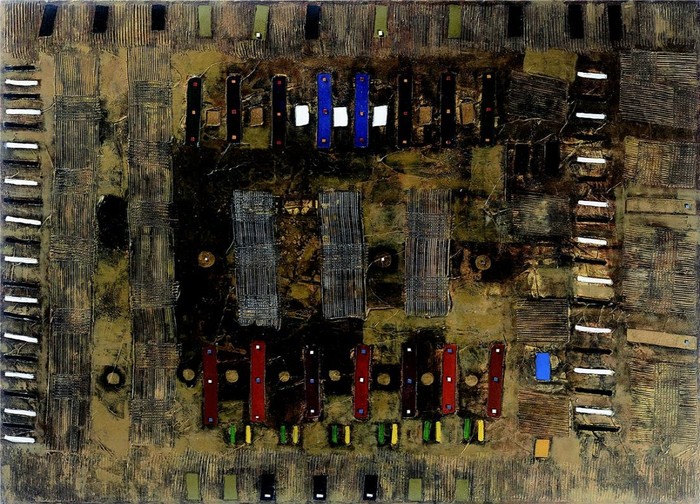 작품 내 빗살무늬토기 표면처럼 표현된 부조적 마티에르는 초기 작업부터 지금까지 이어진 작가의 서명이라 할 수 있다.