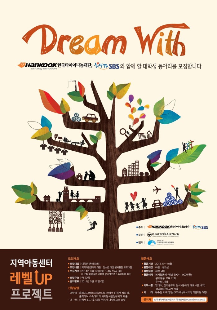 한국타이어나눔재단이 SBS희망TV 및 한국대학사회봉사협의회와 함께 진행하는 이번 프로젝트는 전국의 지역아동센터를 이용하는 아동, 청소년들이 꿈을 가지고 건강하게 성장할 수 있도록 돕기 위해 마련됐다. 한국타이어는 이번 드림위드 프로젝트를 통해 대학생들이 직접 아동, 청소년들을 위한 프로그램을 자유롭게 기획하고 실행, 운영할 수 있도록 활동을 지원할 예정이다.