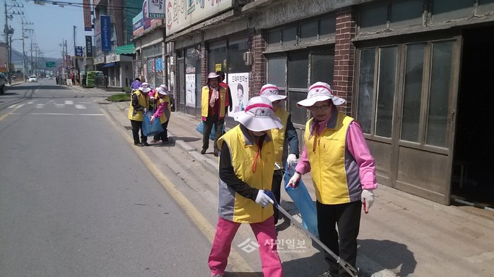 지난 8일 경기 안성시 죽산면 동안성 노인대학은 학생 30여명으로 자원봉사대를 구성해 죽산면 일대 거리에 방치된 쓰레기를 수거하는 등의 환경 정화활동을 실시했다. 사진은 이날 봉사활동 참여자들이 쓰레기를 수거 중인 모습. (사진제공=안성시청)