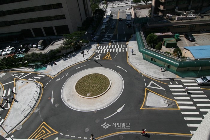 | ▲ 불필요한 신호대기 시간을 줄여 원활한 교통흐름을 만들기 위한 회전교차로가 오는 8월부터 행당도시개발 지구내 13곳에 신규 설치된다. | ||