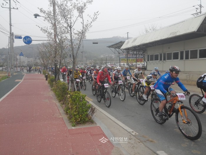 지난 13일 충남 아산시 일대에서 '제13회 아산시 이충무공배 전국산악자전거대회'가 열려 산악자전거 선수 및 동호인 2000여명이 광덕산, 신정호-봉곡사 코스에서 다운힐과 크로스컨트리 부문으로 나누어 참가했다. 사진은 이날 대회에 참여자들이 주행 중인 모습.(사진제공=아산시청)