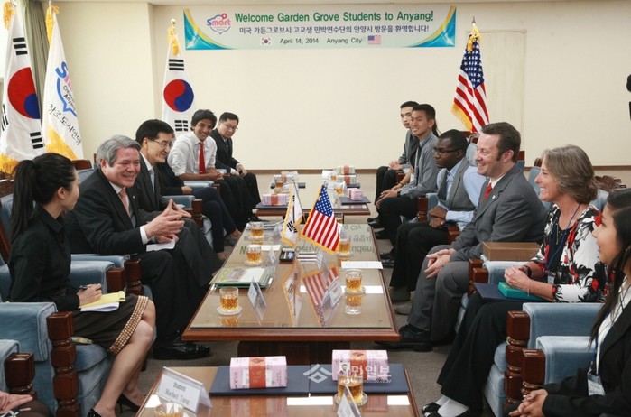 경기 안양시와 자매도시 결연을 맺고 있는 미국 캘리포니아주 가든그로브시의 고교생 민박연수단이 한국의 문화체험을 위해 안양시를 방문했다. (사진제공=안양시청)