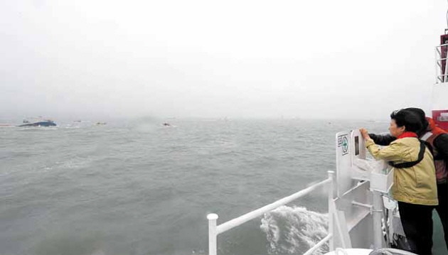 박근혜 대통령이 17일 진도 여객선 침몰 사고가 발생한 현장을 방문해 구조작업을 지켜보고 있다. 박 대통령은 “생존자가 있다면 1분 1초가 급하다”면서 실종자 구조에 최선을 다해 줄 것을 당부했다.