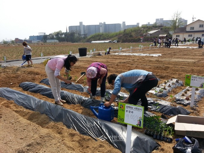[시민일보=시민일보 기자] 최근 경기 안성시가 지역내의 농업에 종사하지 않는 시민들이 가족과 함께 농작물을 키워 수확할 수 있는 친환경 텃밭농원의 개장식을 열고 참여자들은 가족과 함께 상추, 고추 등의 채소모종과 씨앗을 심는 시간을 보냈다. 사진은 텃밭에서 농업체험을 하는 참여자들의 모습. (사진제공=안성시청)