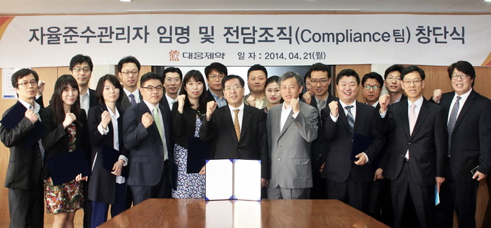 [시민일보=이대우 기자] ㈜대웅제약(대표 이종욱)은 서울 삼성동 본사에서 이종욱 사장과 임원, 주요부서 팀장들이 참석한 가운데 자율준수관리자 임명식 및 컴플라이언스(Compliance, 공정거래 전담부서)팀 창단식을 지난 21일 개최했다.