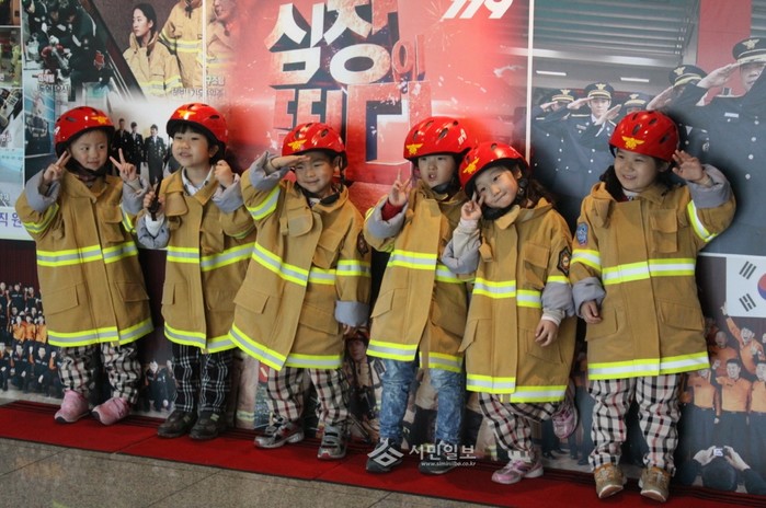 23일 오전 인천서부소방서가 지역내 어린이집 교사 및 원생 60여명을 대상으로 각종 안전수칙 습득과 조기안전의식 함양을 위한 '우리는 안전어린이 119교실'을 실시했다. 사진은 이날 소방안전체험활동에 참여한 원생들이 소방복을 입고 기념촬영을 하고 있는 모습. (사진제공=인천서부소방서)